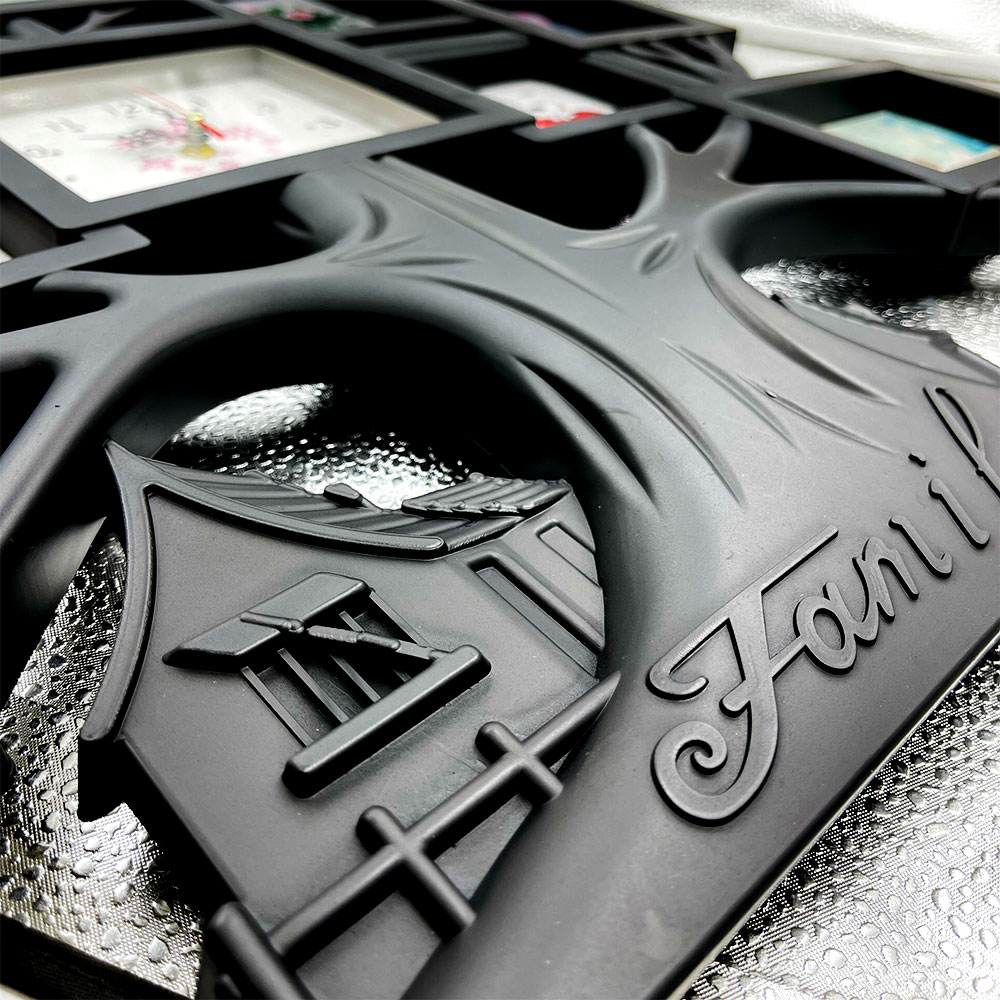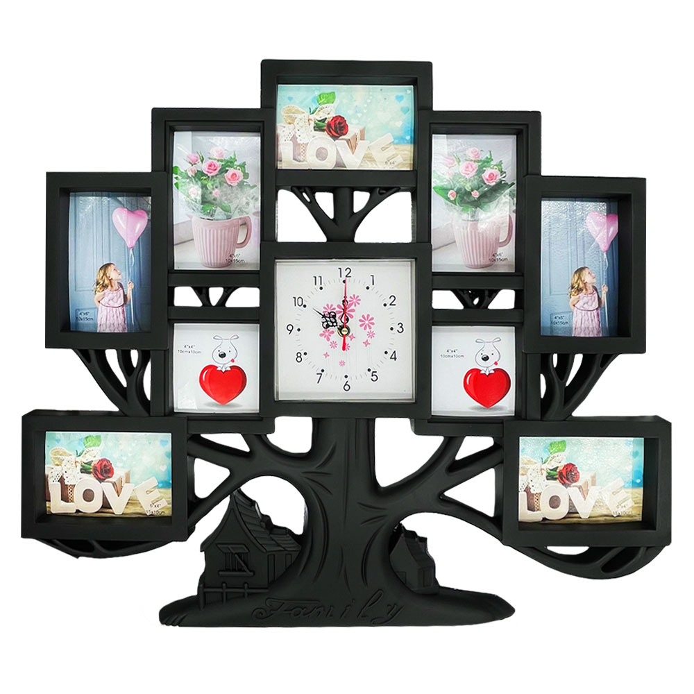 Képkeret az élet fája nagy, óra, kollázs 9 kép, Createur, fekete, 66 x 57 cm